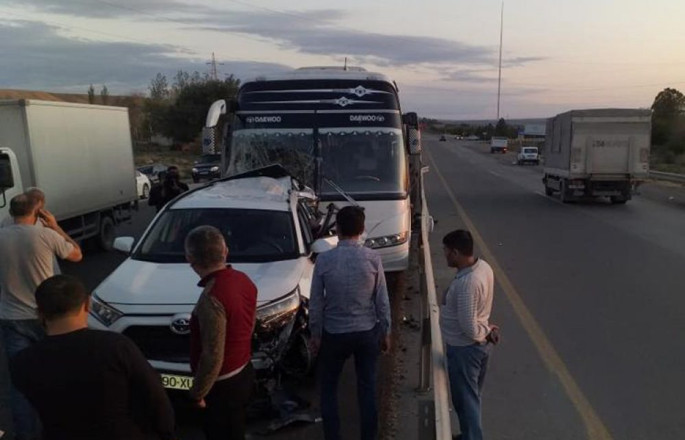 Qazaxdan Bakıya gedən sərnişin avtobusu qarşıdan gələn “Toyota” markalı minik avtomobili ilə toqquşub. Qəza nəticəsində minik avtomobilində olan sərnişin ağır xəsarət alıb.